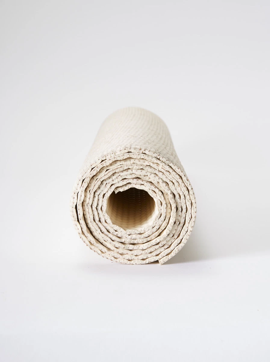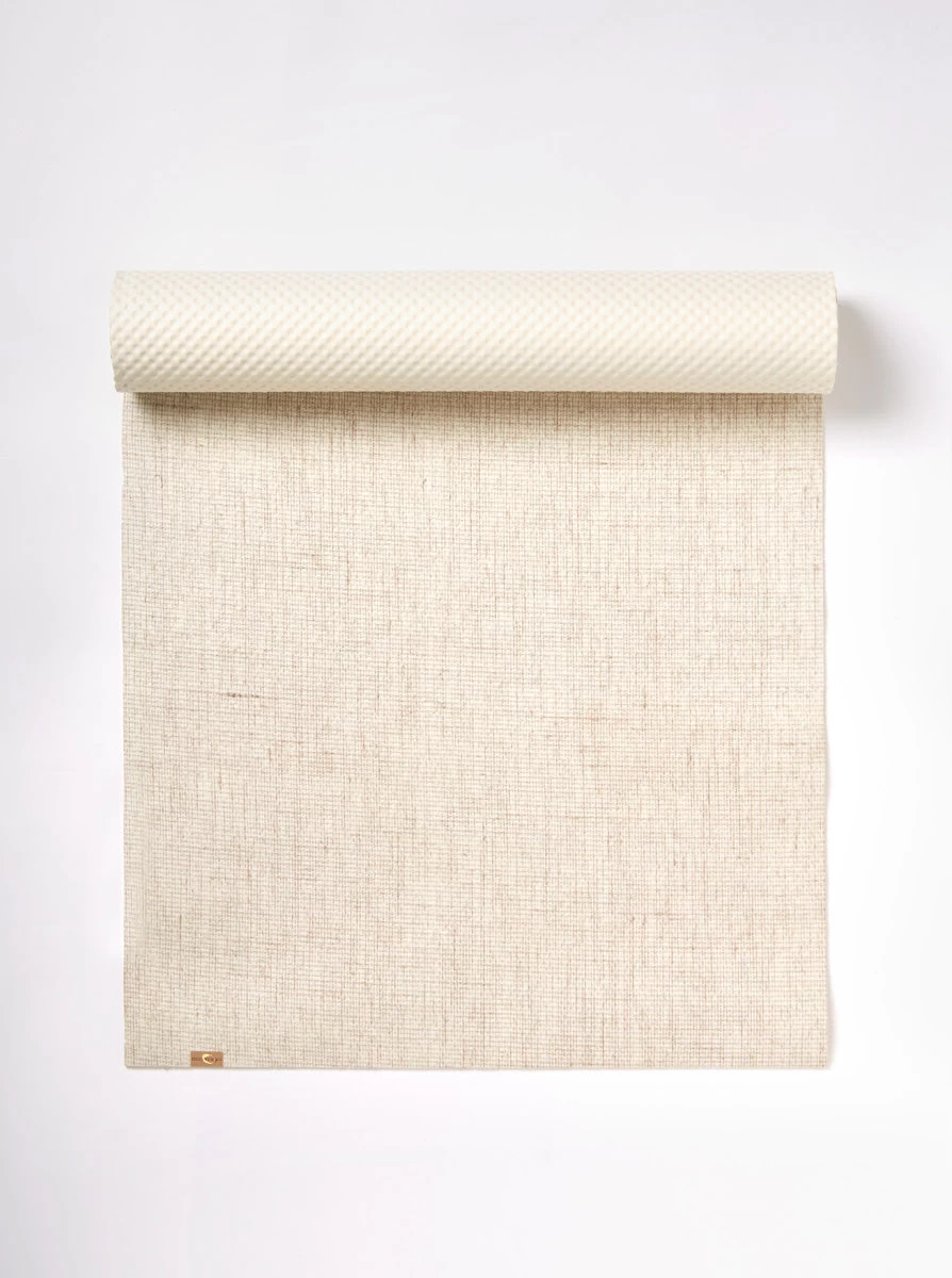 The ecoYoga biodegradable yoga mat is both practical and ethical for beginners and experienced students alike. With a pure rubber underside for a firm grip on the floor, this eco-friendly yoga mat boasts a surface layer blend of natural hessian/jute fabric and a unique 100% natural rubber compound which provides an excellent non slip surface for your yoga practice.