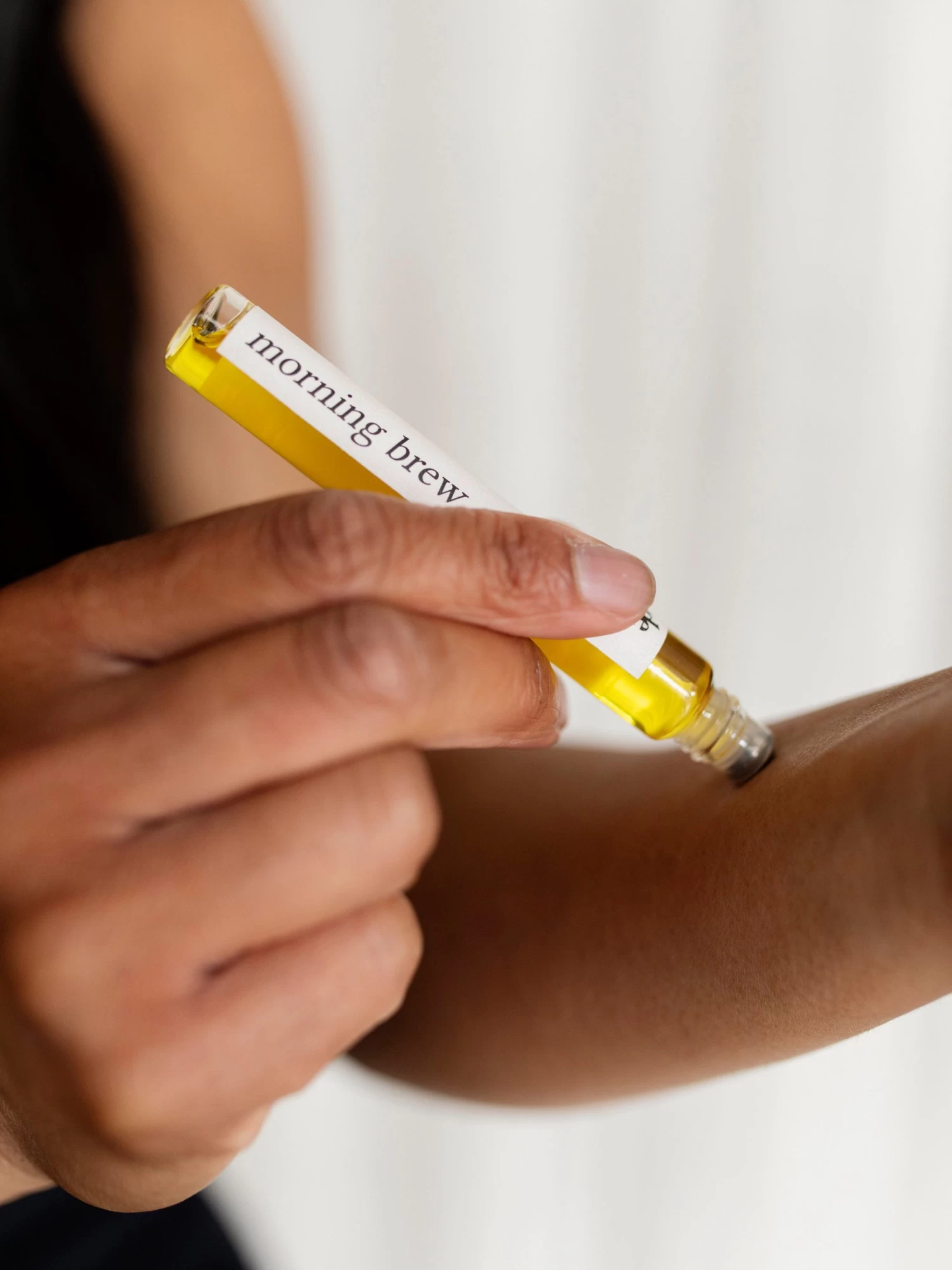 Roll over the insides of your wrists, temples or any other pulse points. Re-apply as needed and ditch that second coffee, I dare you.