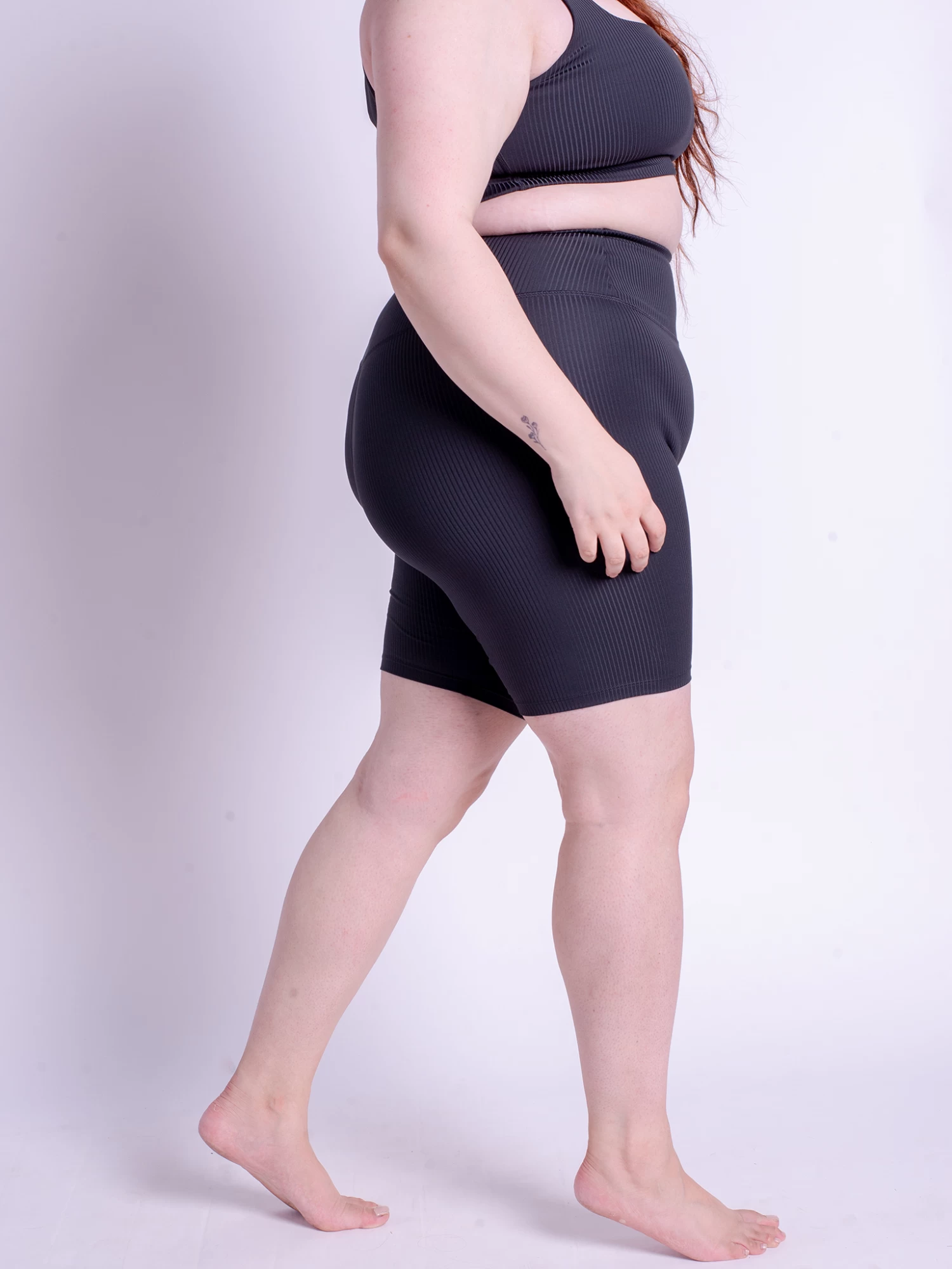 Introducing the Girlfriend Collective compressive high-rise bike shorts with an 8.5″” inseam and new ribbed texture.