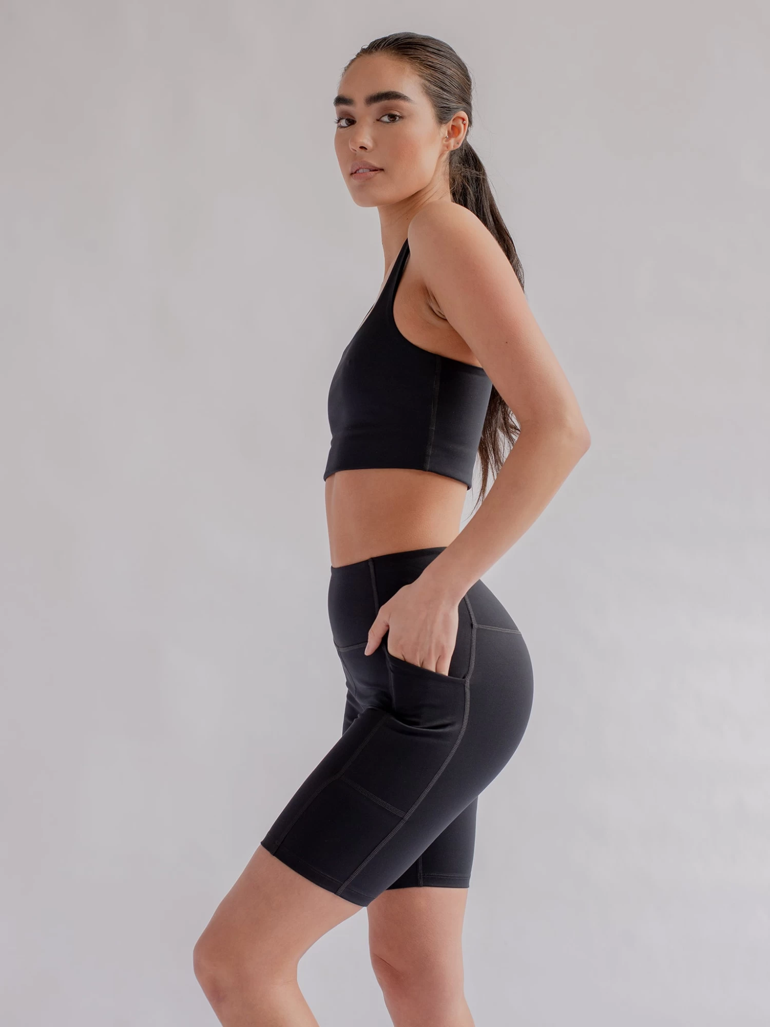 These Girlfriend Collective high-rise bike shorts are made from recycled water bottles – for working out and helping the environment.