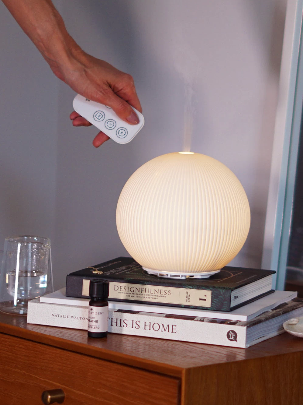 To operate, simply fill the Chi with water, and add a few drops of the essential oil or fragrance oil of your choice and the Chi will fill the air with the soul-soothing benefits of aromatherapy, scent, and light.