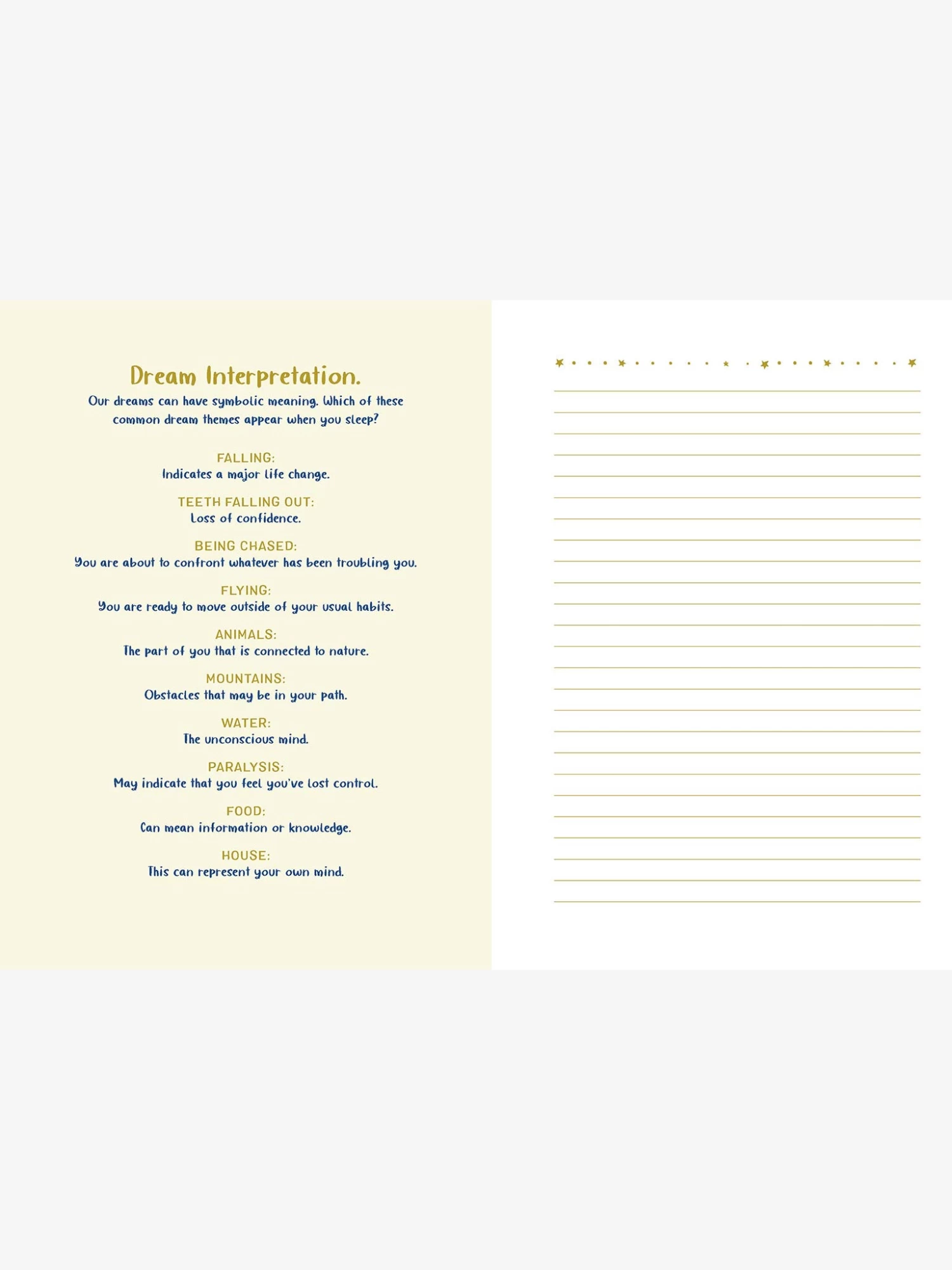 30 prompts to inspire mindful reflection.10 spells, rituals, and meditations to incorporate into your practice.An introduction to calming magic.Full-color illustrations throughout.Blank, lined, and uncoated pages for recording your own dreams, hopes, and magic.