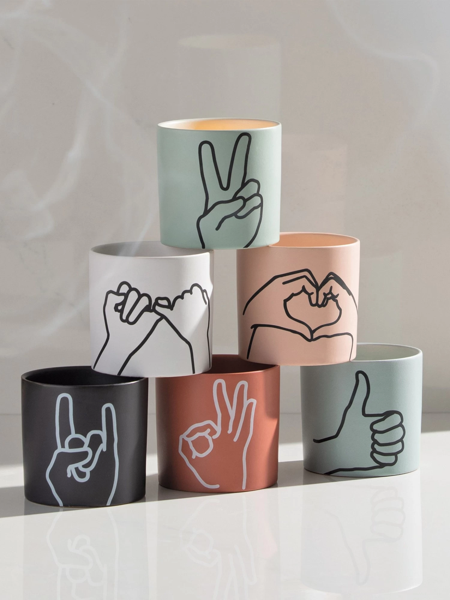 Each candle comes with a gold foil stamped dust cover with a fun sentiment to share with the people you love.