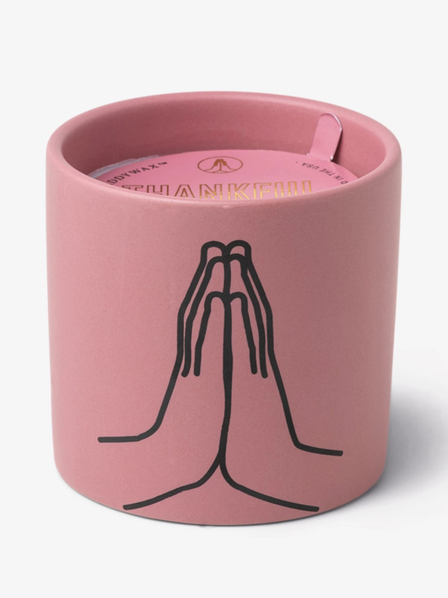 Express yourself with these colorful matte ceramic candles. Each candle comes with a gold foil stamped dust cover with a fun sentiment to share with the people you love.