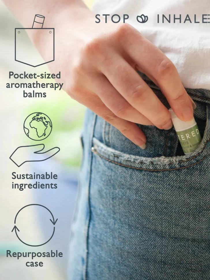 Each 1.5g mess-free mini balm contains up to 25 essential oils, which deliver a unique 100% natural fragrance and aromatherapeutic benefit. Each balm can be used individually to target a specific need or together, as a personal mood and lifestyle support ‘tool kit’. Leak-free design makes it perfect for your pocket or bag.