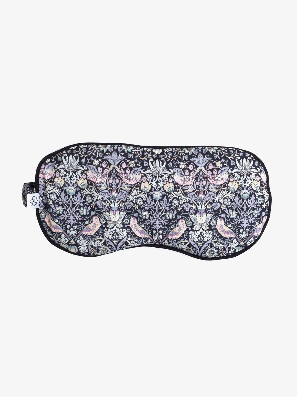 The removable outer cover is washable and made from beautiful and iconic Liberty London Tana Lawn cotton fabric. A grey drawstring bag is included for storage and travel. The eye mask can also be used as a cold compress – place it in the freezer in a sealed plastic bag to chill 30-60 minutes before use. It can also be warmed in the microwave for 15 seconds to help soothe tired eyes. Bliss!