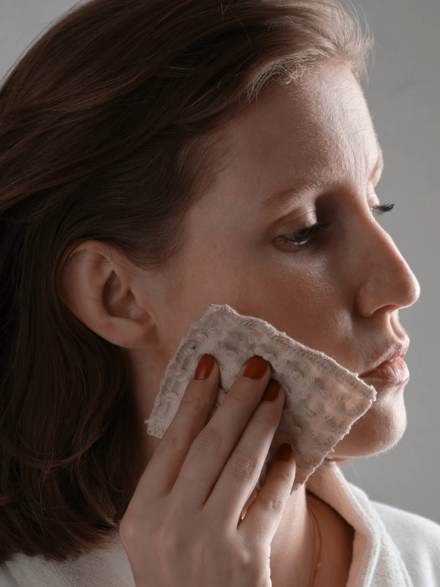 It all came together. To use leftover fabric from The Organic Company’s towel production to make soft and reusable pads for facial care and makeup removal. So much better than single use cotton pads. Made from 100% GOTS certified organic cotton in waffle fabrication.