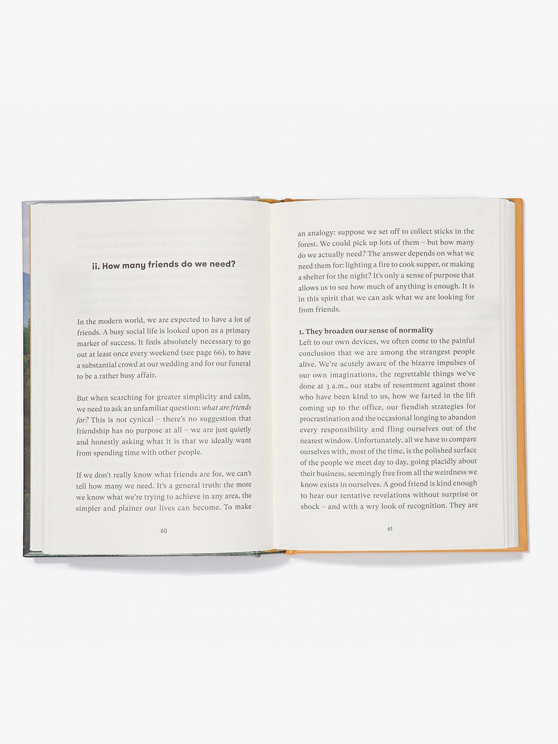 This book is a guide to the simpler lives we crave and deserve. In it, we learn about Zen Buddhism, modernist architecture, monasteries, psychoanalysis, and why three good friends and a few treasured belongings are enough.Â