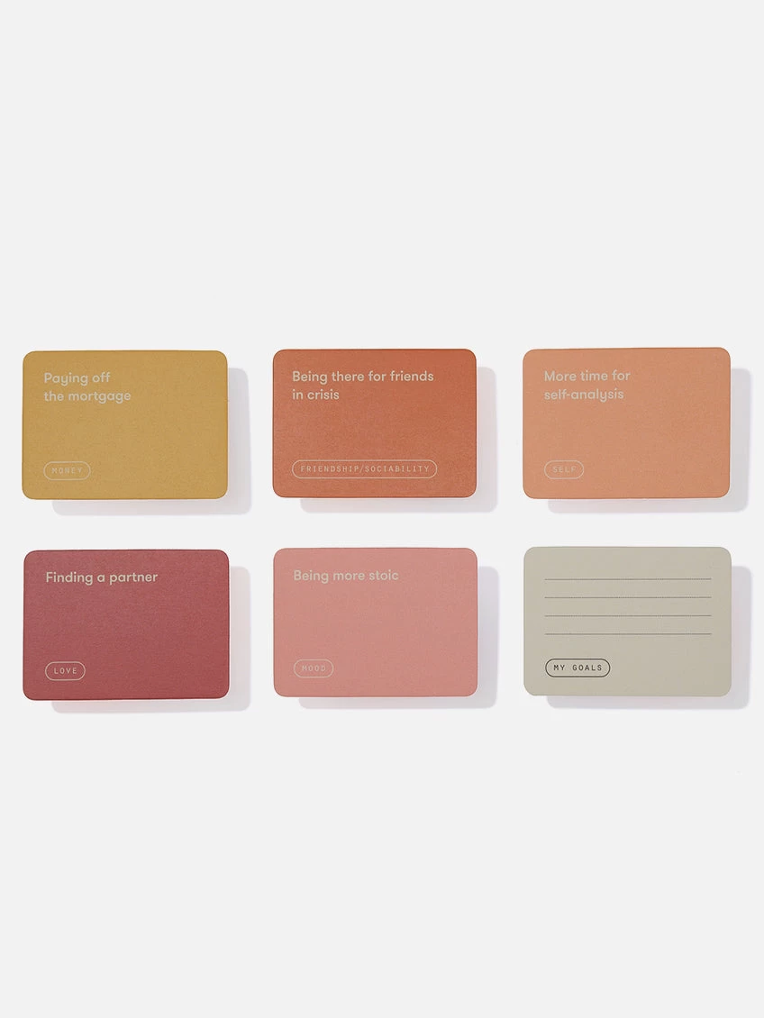- There are also included 20 blank cards, so you can write down any goals or priorities that aren’t included in this set. In the booklet, you’ll find six exercises for using the cards. Don’t feel obliged to use any of them: you might just want to arrange the cards yourself according to whatever order comes to mind.