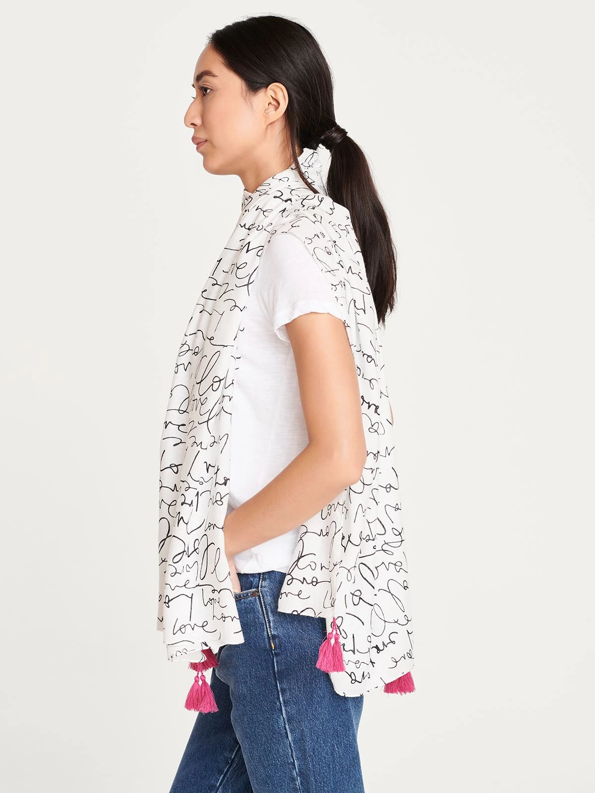 Super soft, smooth, and works three ways – around the neck, in your hair, or tied to a bag. The Thought Larissa scarf is made from Lenzing ecovera which is naturally soft and kind to skin. The word Love is printed repeatedly onto the fabric and the bright pink tassels add a pop of colour.