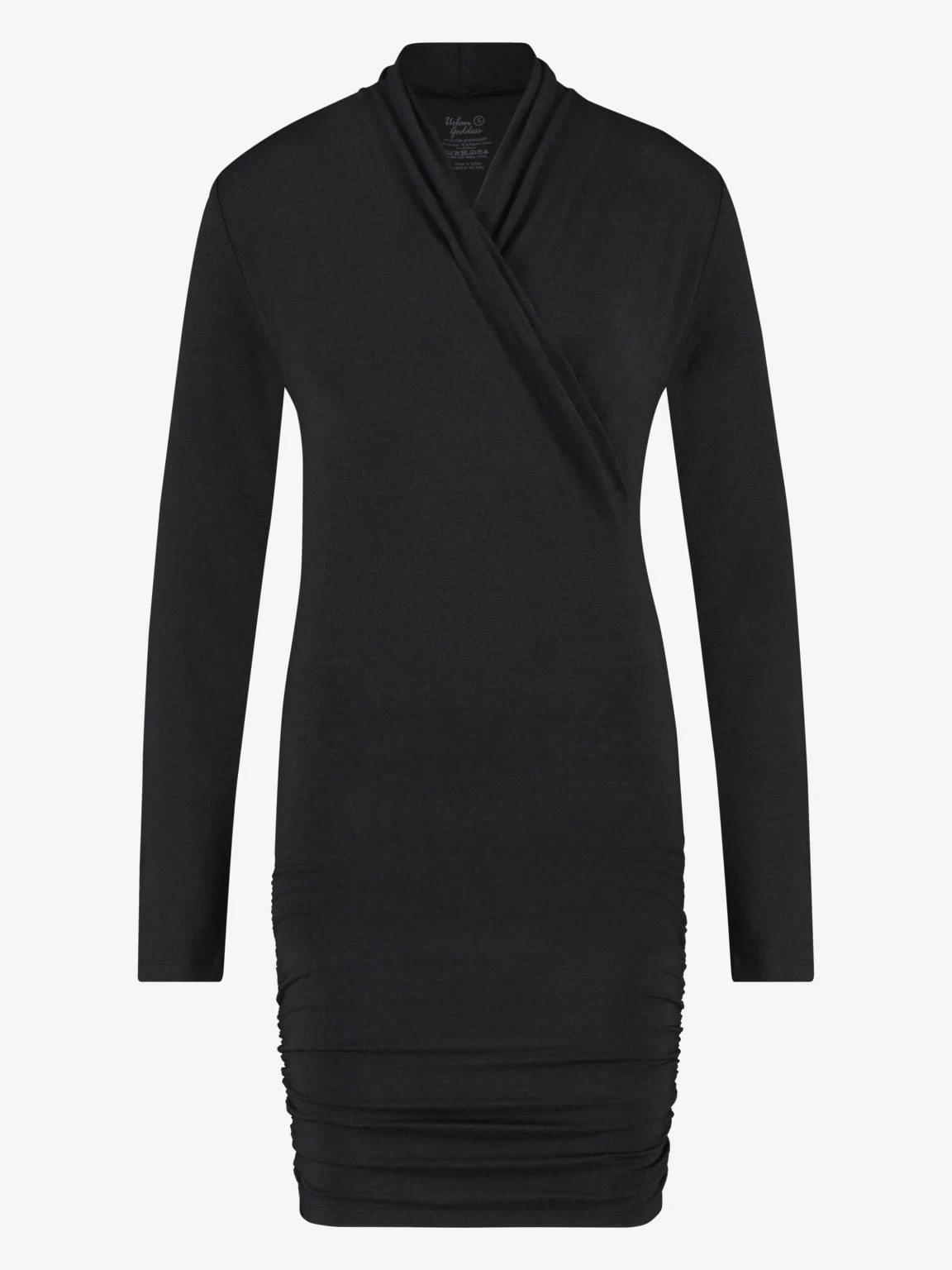 The Good Karma long-sleeved tunic top is a chic, long yoga shirt with long sleeves. Wear the versatile tunic with a high v-neck, or open it up a bit more as it’s easily adjustable. The length is adjustable as well: the tunic is a little longer and the fabric is pleated on the sides which allows you to wear it on your hips, or to pull it all the way down. This creates extra comfort on colder days and during slow-paced yoga styles where you stay in poses close to the ground for longer. The extra length also keeps the shirt in place, so it doesn’t slide up.