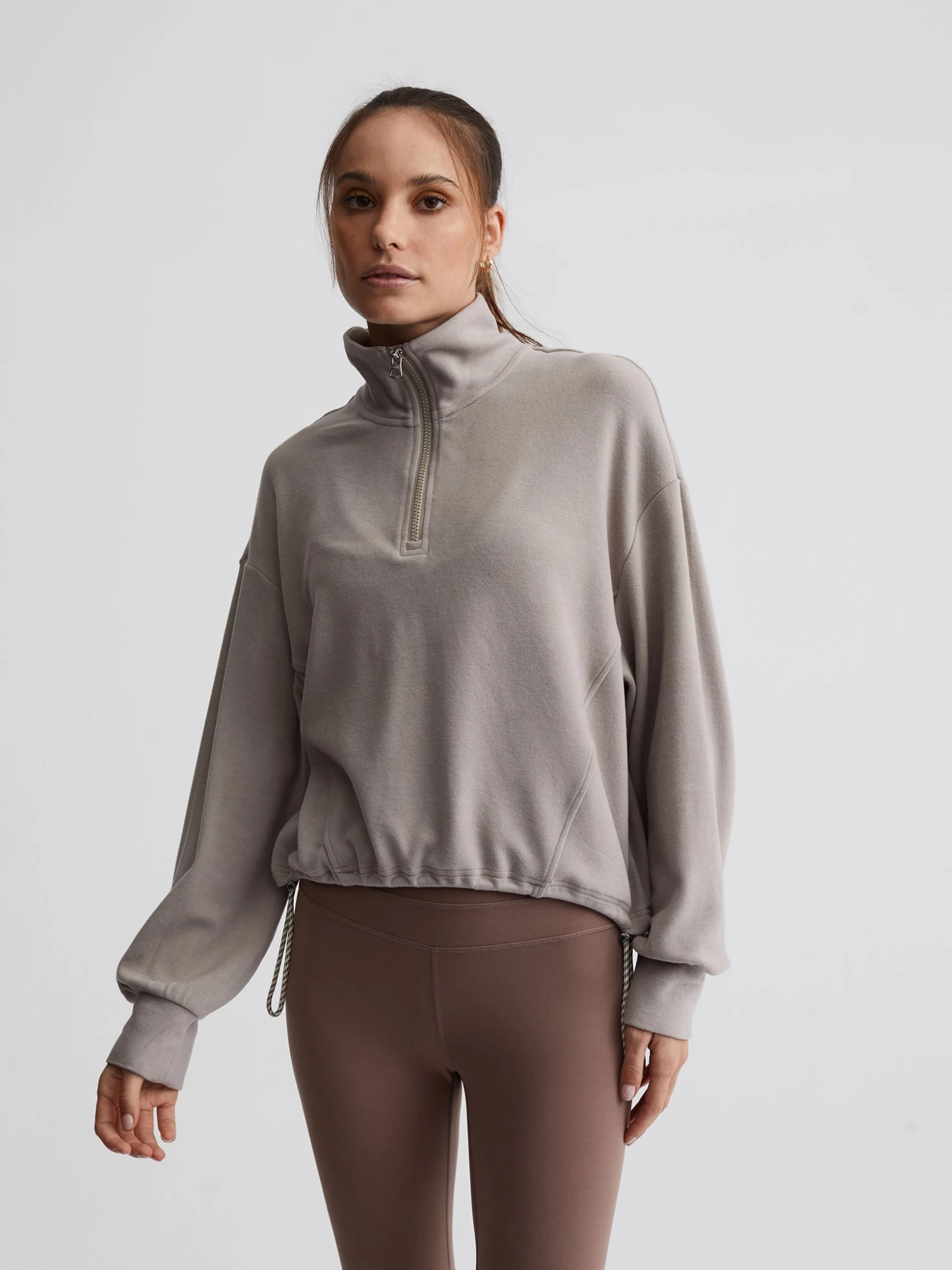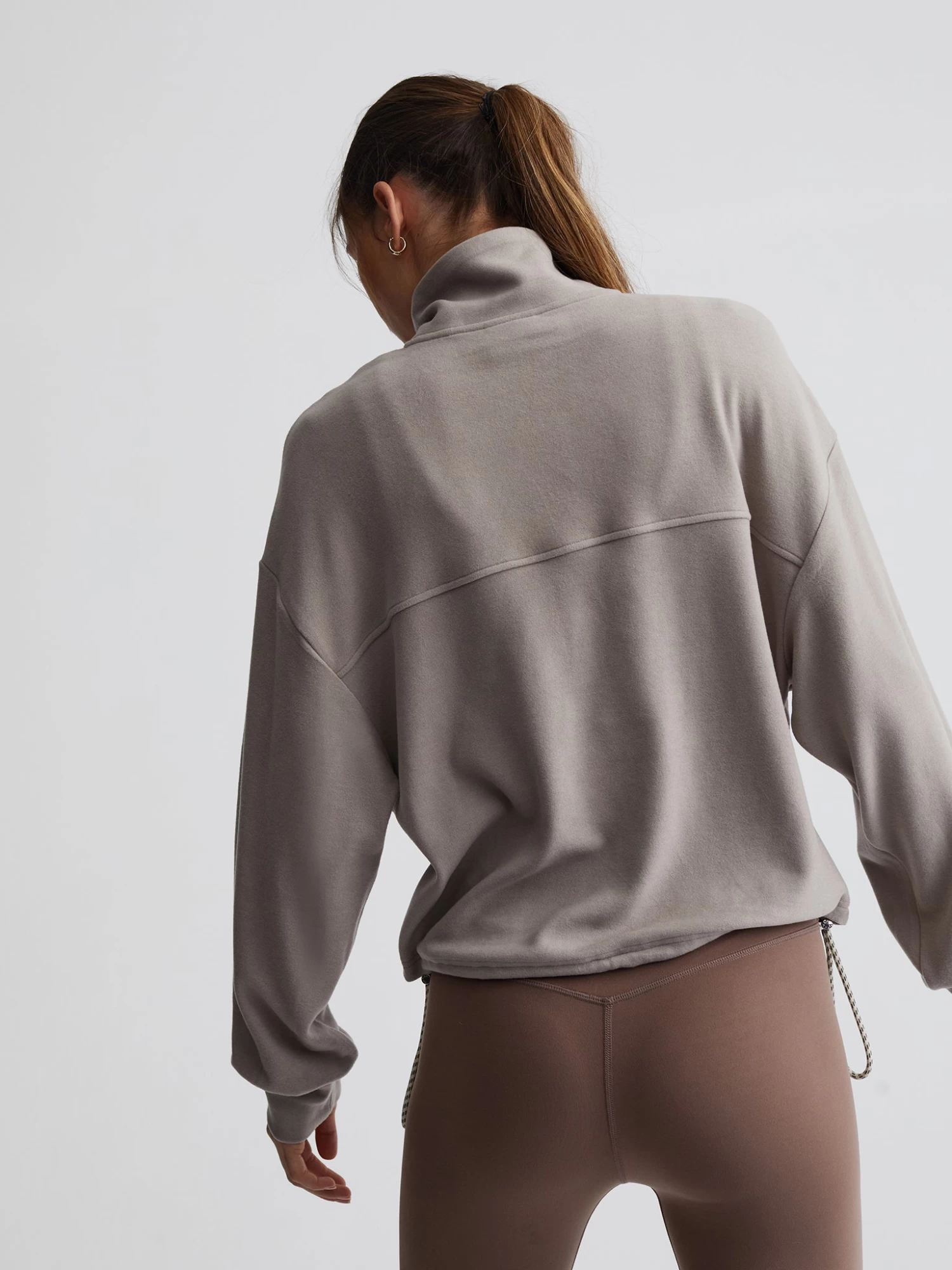 Designed with multilayering in mind the Collett is a relaxed-fit, midweight top layer with a shorter body and a high, half-zip neck.
