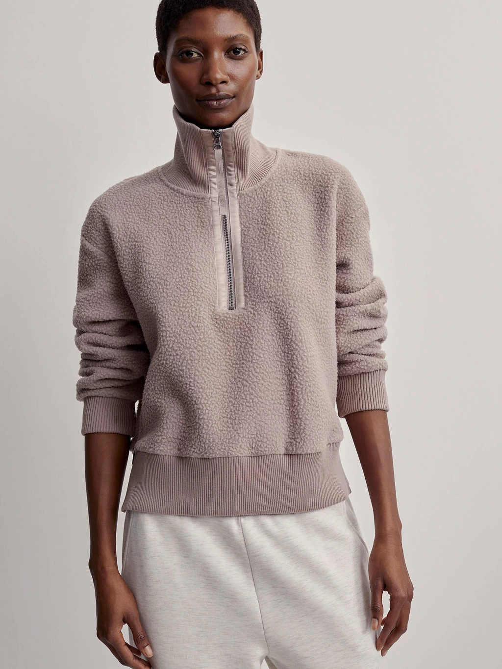 Designed for cool weather layering, the Roselle is a relaxed yet refined half-zip fleece.