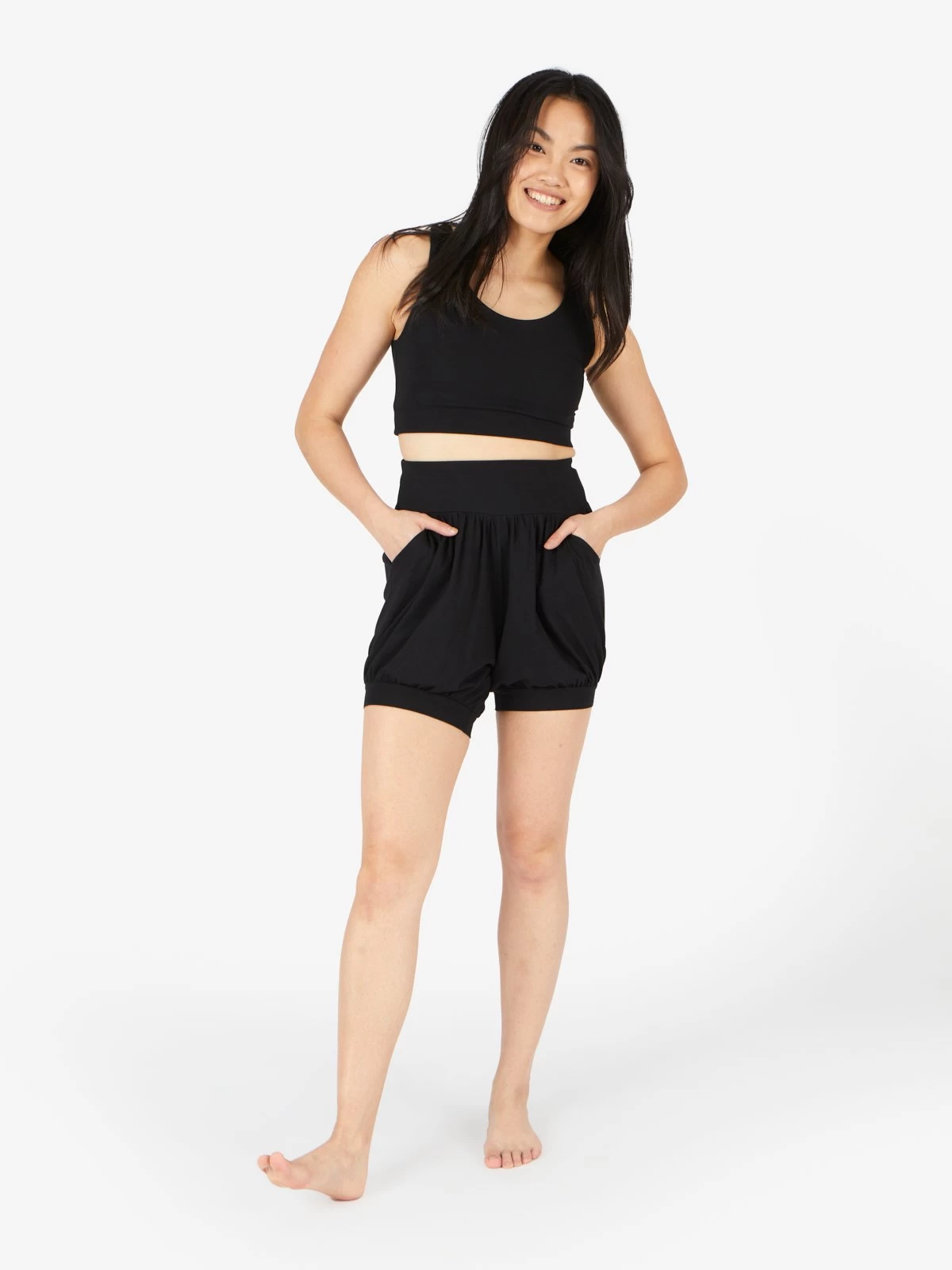 - Cuffed around the thighs with just the right amount of stretch for the ultimate freedom and comfort in your practice