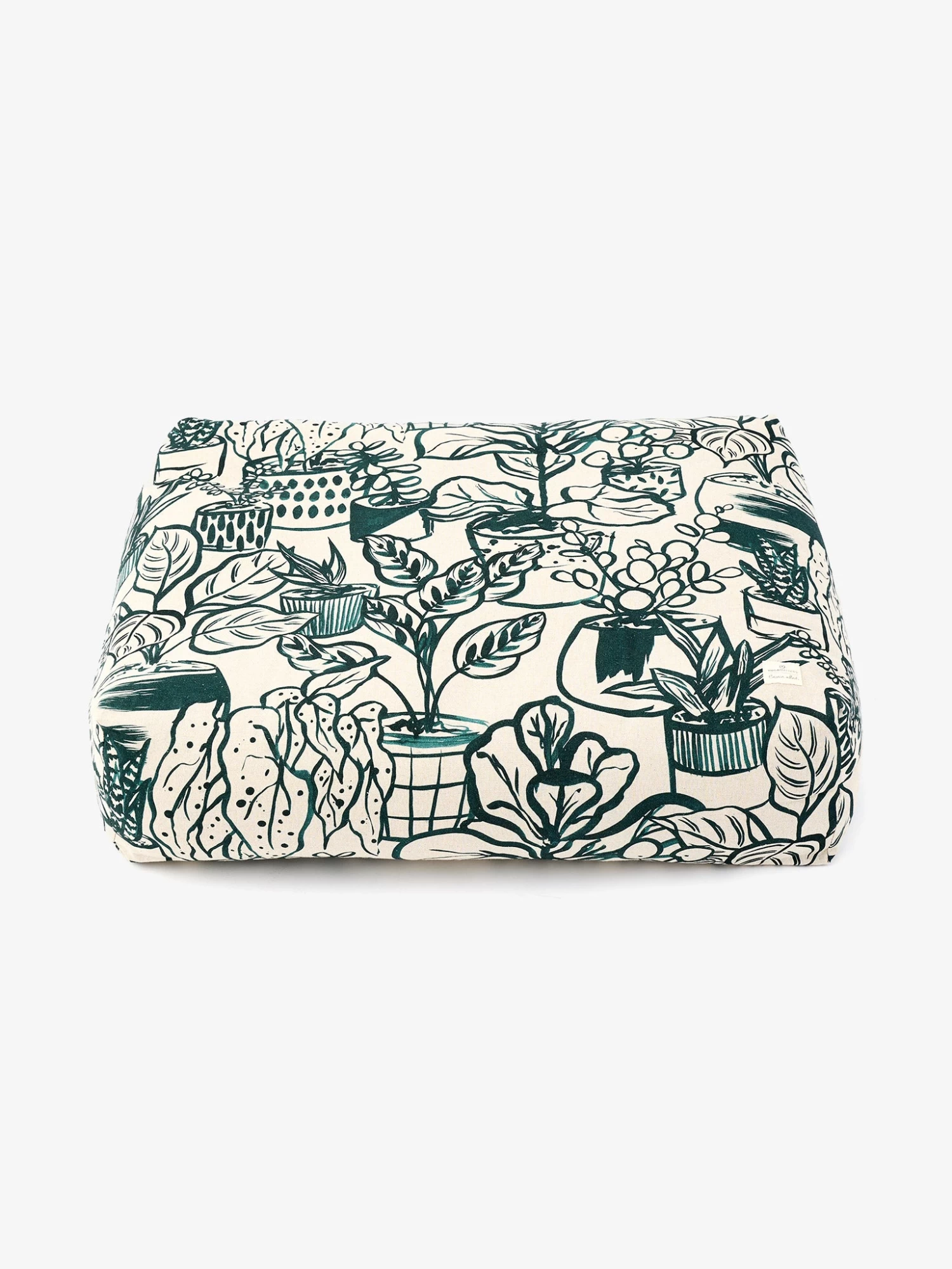 This natural linen zabuton features a collection of playful houseplant illustrations inspired by Emma’s own plants at home. From a fiddle leaf fig to succulents and calathea plants, the fluid ink drawings are loose and expressive and make it a perfect feature cushion for modern homes. Each luxury zabuton is random cut from the pattern meaning each one is unique.